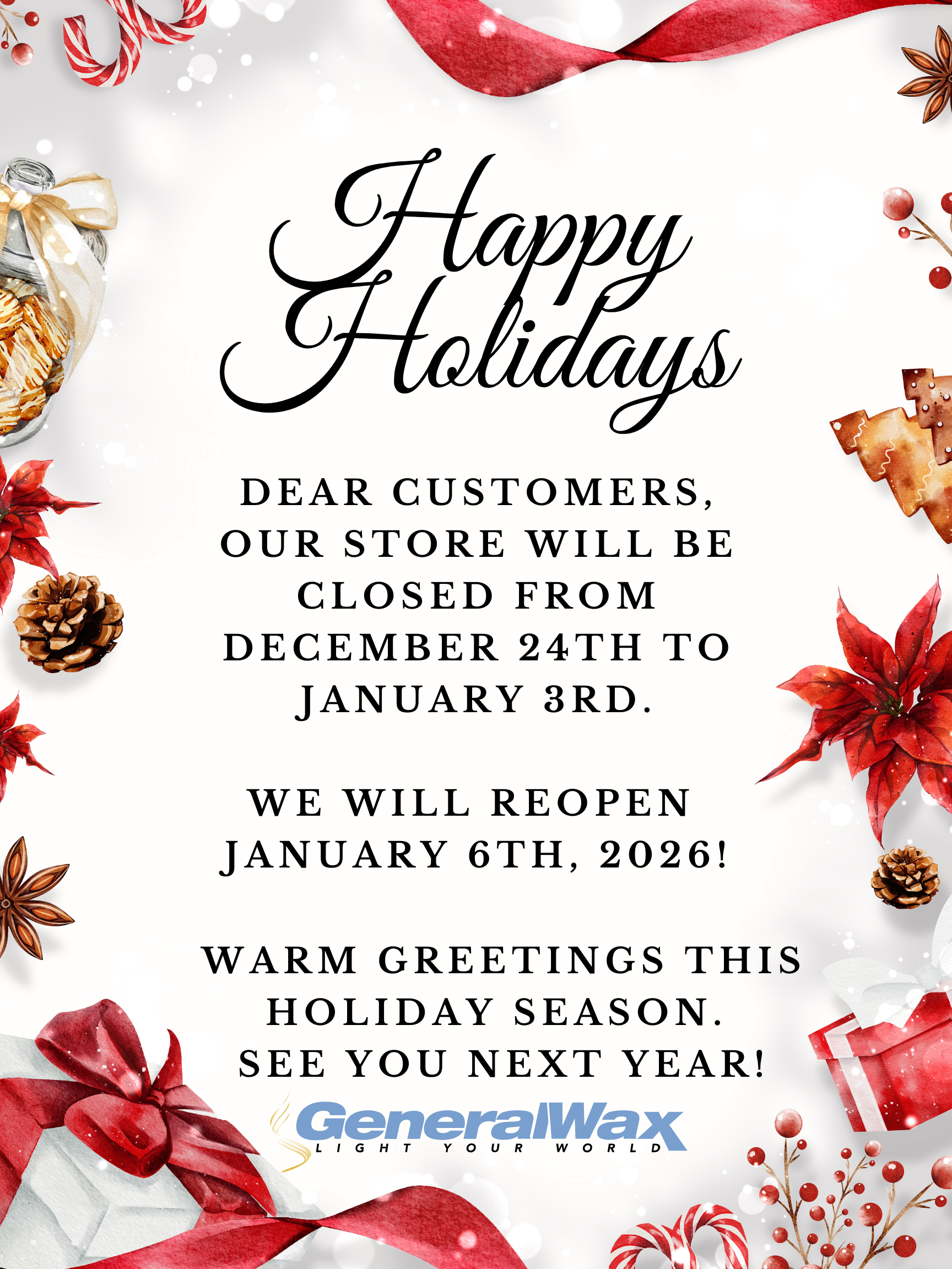 Sign up for updates on the latest General Wax & Candle Company collections, campaigns and exclusive offers! No spam, just the good stuff!